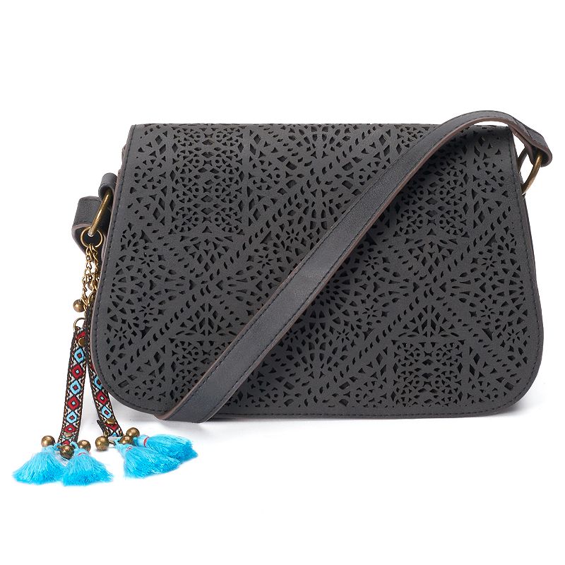 T-Shirt & Jeans Laser-Cut Tassel Crossbody Bag, Women's, Black